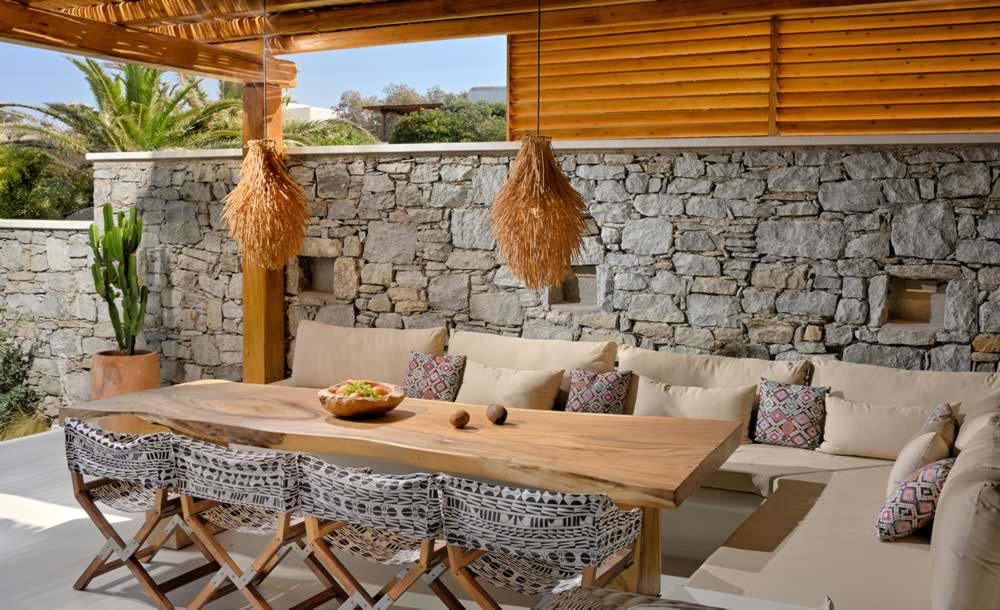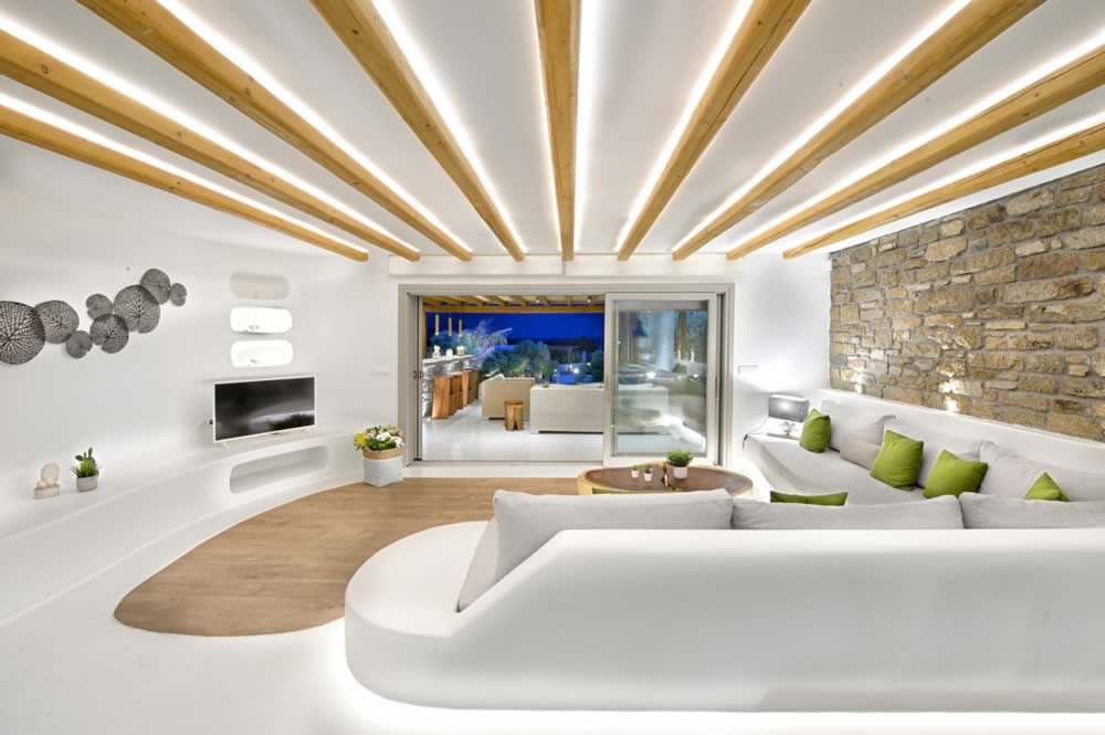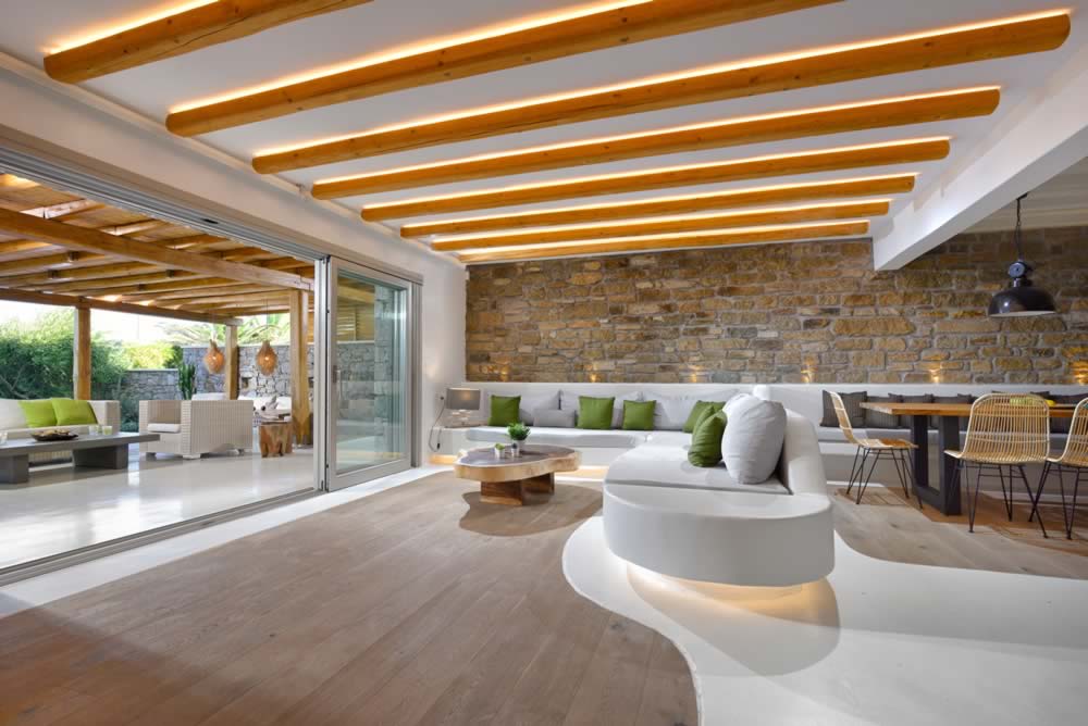 This villa, fully renovated, belongs to the MELODY house complex, which is just 80 m. away from the beach of Kalafatis, located in the southern part of the island and 10 km from Mykonos Town.