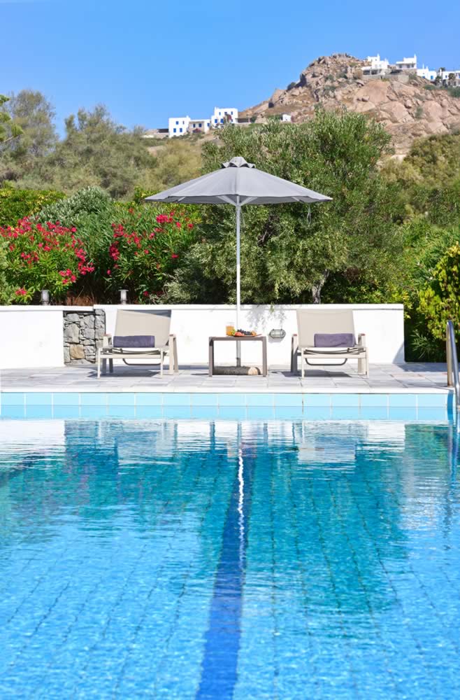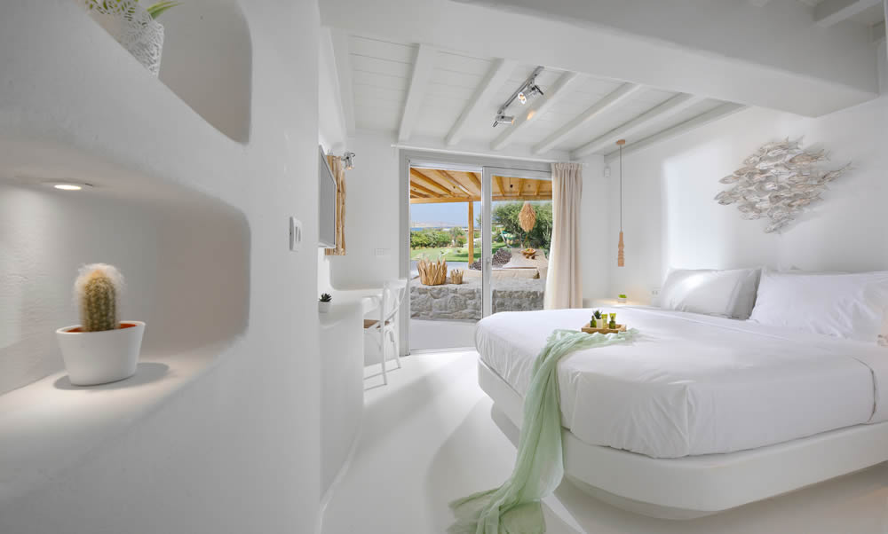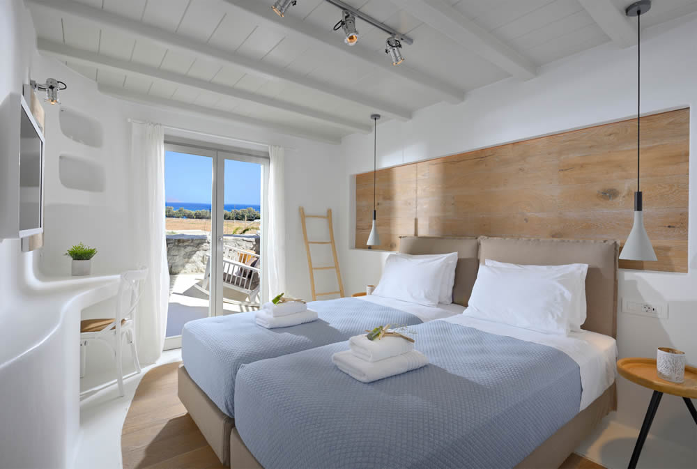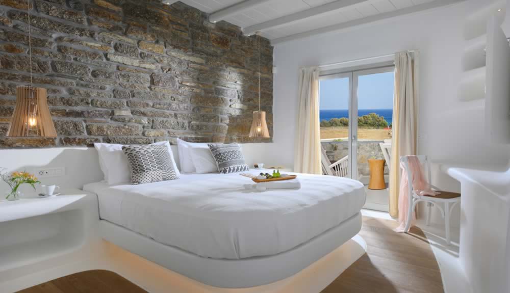 All rooms overlook the sea and the beach of Kalafatis, one of the island’s quietest and cleanest beaches.